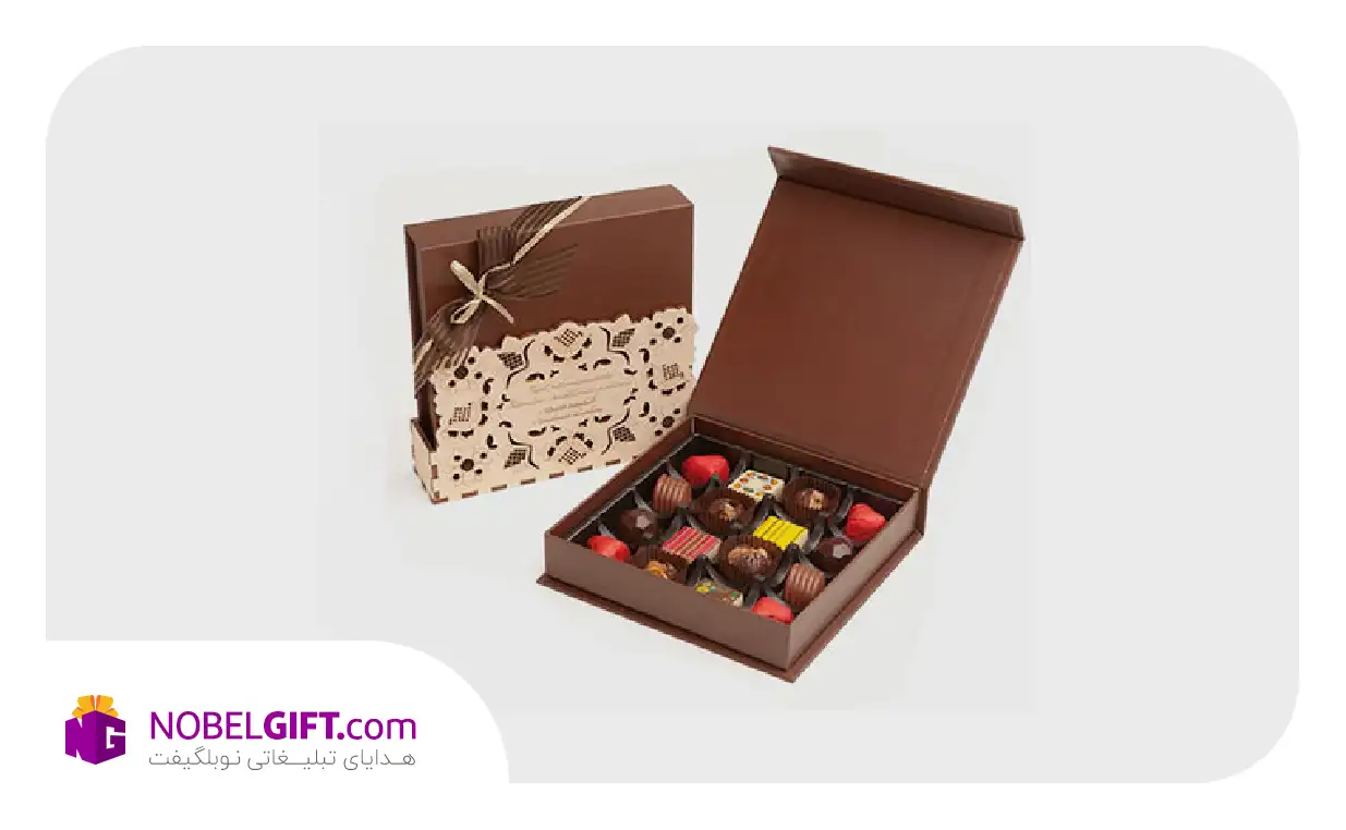 • شکلات سفارشی: یک هدیه متفاوت اما خاص که می‌تواند نظر مخاطب شما را بسیار جلب کند شکلات‌ها هستند؛ چراکه این هدیه سفارش اختصاصی شماست و می‌توانید طرح روی آن یا حتی نحوه و مدل بسته‌بندی آن را خودتان انتخاب کنید. درواقع از مزیت‌های این هدایا منحصربه‌فرد بودن، خاص بودن و تکراری نبودن آن‌هاست. از جمله مزایای دیگری که سبب تفاوت این هدیه از هدایای دیگر شده است، قیمت مناسب آن‌هاست که در مقایسه با سایر هدایا بسیار کمتر و مقرون به صرفه‌تر خواهد بود.