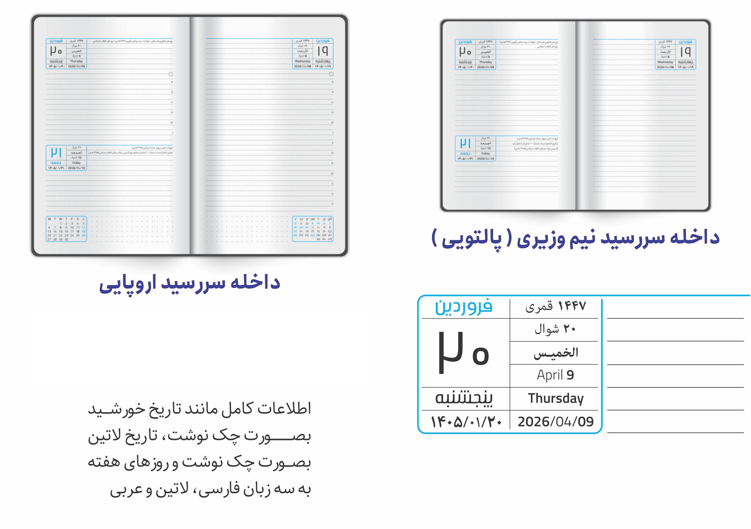 - نوع: تقویم رومیزی فنری