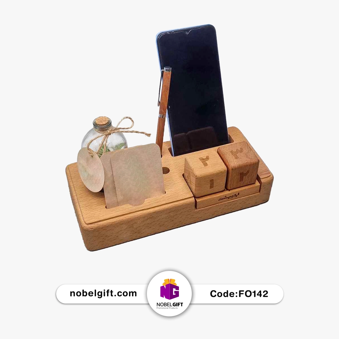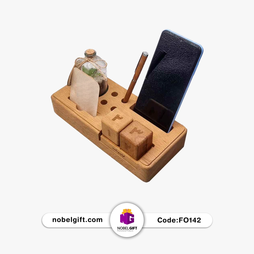 استند چوبی تبلیغاتی FO142 با طراحی منحصربهفرد و بسته بندی ویژه در کنار کیفیت و زیبایی، هدیهای شیک و مناسب جهت تقدیم به افراد است. این ست تبلیغاتی شامل محصولات زیر می باشد:
