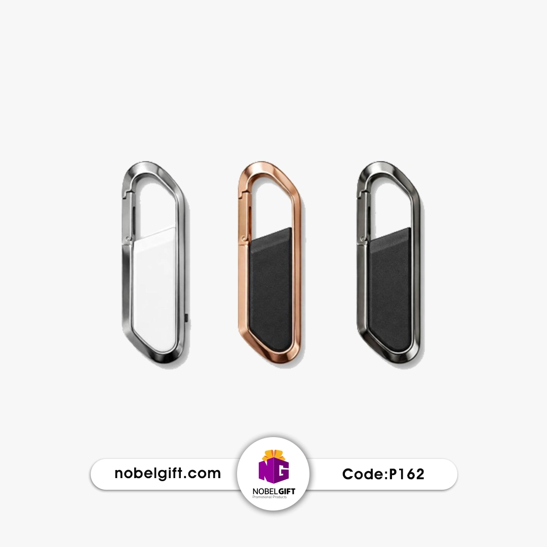 2. این مدل طراحی بسیار مدرن، شیک و کاربردی دارد: شکل کارابین (کارابینر کوهنوردی کوچک) با قاب فلزی محکم و یک پنل مرکزی (insert) که معمولاً از جنس PU چرم مصنوعی، PVC، آلومینیوم مات یا مواد مشابه است و برای حکاکی/چاپ لوگو عالی است. ظاهر آن ترکیبی از استایل outdoor/military و لوکس شهری است – خیلی محبوب برای هدایای تبلیغاتی باکلاس.