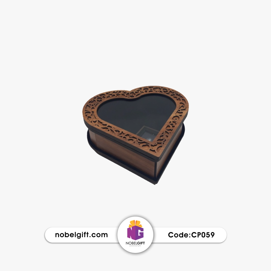 جعبه هدیه چوبی قلبی طلقدار CP059