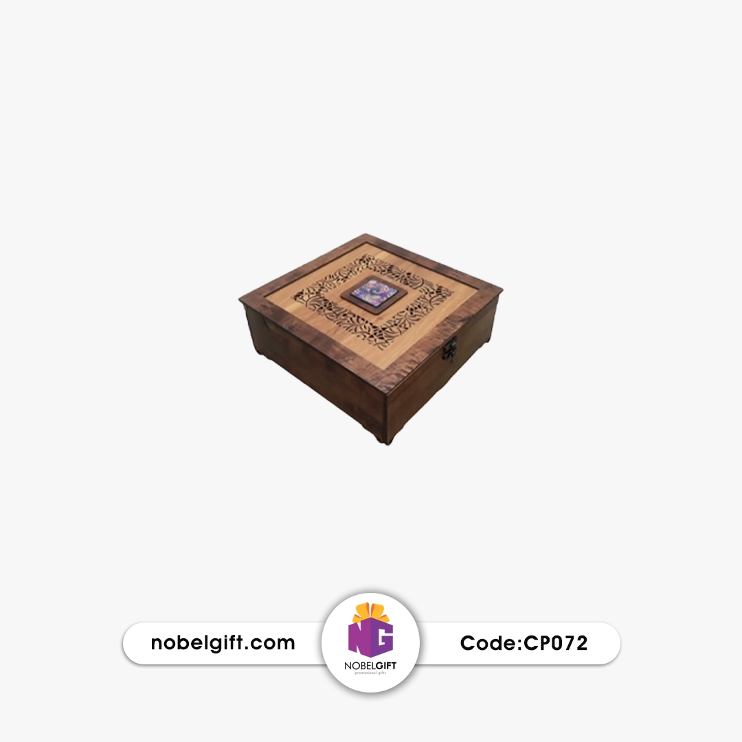 جعبه پذیرایی چوبی 8 خانه CP072 گزینهای کاربردی و خوشساخت برای پذیراییهای رسمی و تبلیغاتی است. این جعبه با طراحی ساده اما شیک و استفاده از کاشی تزئینی کوچک روی درب، جذابیت بصری بالایی دارد و انتخابی مناسب برای هدایای سازمانی محسوب میشود.