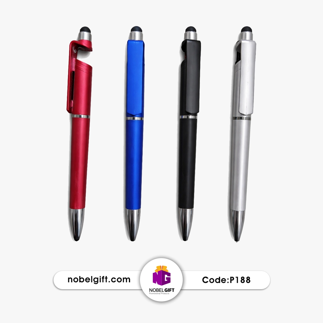 این خودکار تبلیغاتی کد P188 از محصولات نوبل گیفت (nobelgift.com) یک مدل چندکاره (multi-function) پلاستیکی-فلزی ترکیبی با نوک استایلوس (stylus tip) برای صفحه‌های لمسی است.