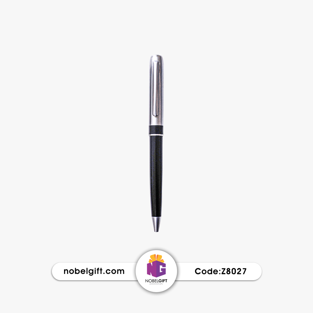 • کد محصول: Z8027  نوع محصول: خودکار تبلیغاتی فلزی (بال پوینت) دورنگ  جنس: فلز (بدنه مشکی، کلاهک نقره‌ای کروم)