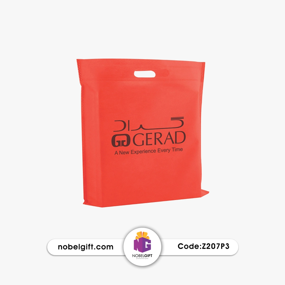 • کد محصول: Z207P3  نوع محصول: ساک دستی تبلیغاتی (شاپینگ بگ) با برش دسته  جنس: پارچه نان وون (Non-Woven / بی‌بافت)