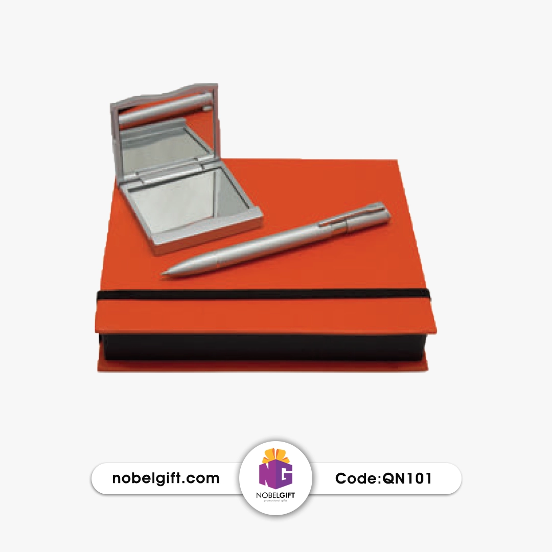 ست تبلیغاتی خودکار و اینه با طراحی منحصربه‌فرد و بسته بندی ویژه در کنار کیفیت و زیبایی، هدیه‌ای شیک و مناسب جهت تقدیم به افراد است. این ست تبلیغاتی شامل محصولات زیر می باشد: