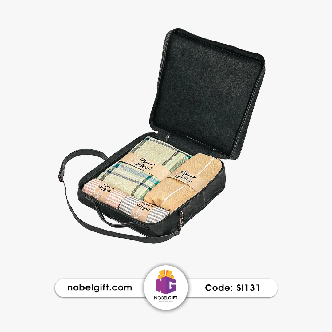ست حوله تبلیغاتی با طراحی منحصربه‌فرد و بسته بندی ویژه در کنار کیفیت و زیبایی، هدیه‌ای شیک و مناسب جهت تقدیم به افراد است. این ست تبلیغاتی 6 تکه شامل محصولات زیر می باشد: