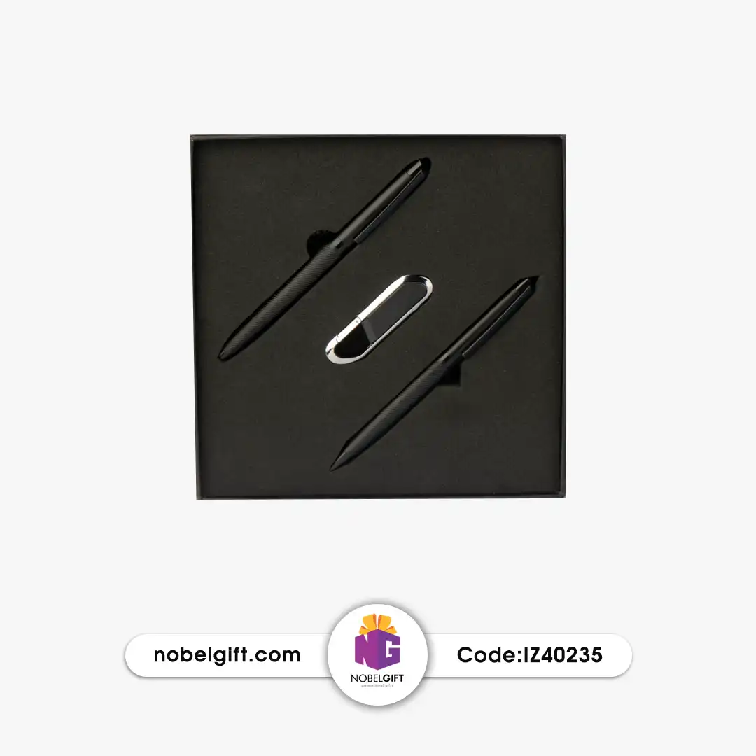 ست خودکار، روان نویس و فلش مدیریتی با طراحی منحصربه‌فرد و بسته بندی ویژه در کنار کیفیت و زیبایی، هدیه‌ای شیک و مناسب جهت تقدیم به افراد است. این ست تبلیغاتی 3 تکه شامل محصولات زیر می باشد: