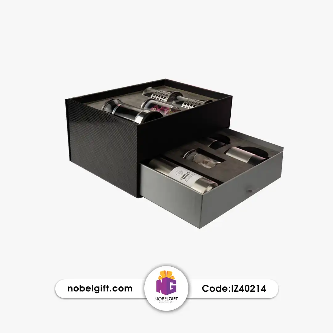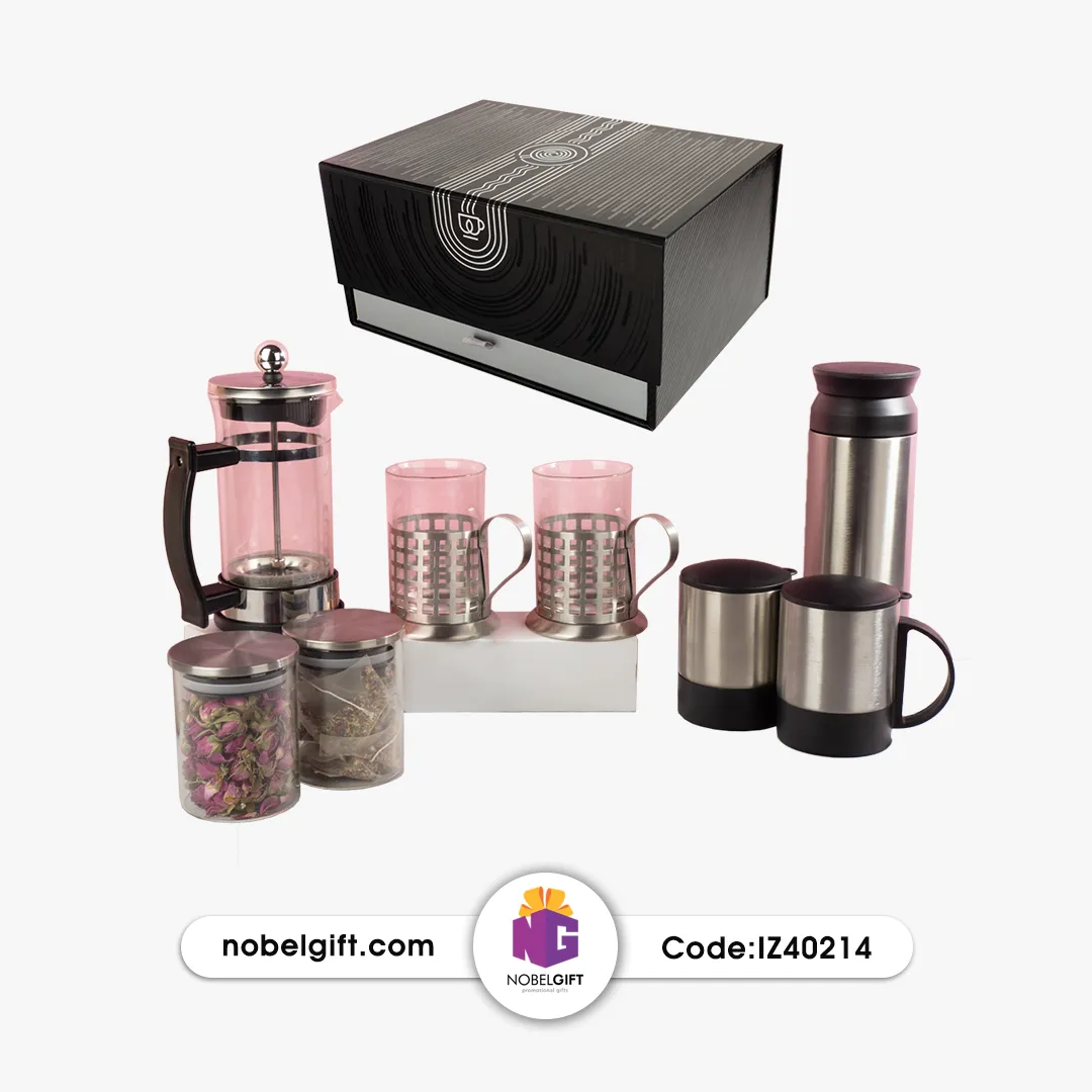 ست دمنوش لوکس تبلیغاتی با طراحی منحصربهفرد و بسته بندی ویژه در کنار کیفیت و زیبایی، هدیهای شیک و مناسب جهت تقدیم به افراد است. این ست تبلیغاتی 8 تکه شامل محصولات زیر می باشد:
