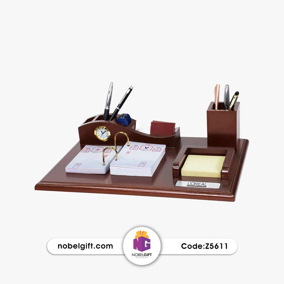 1. ست رومیزی تبلیغاتی کد Z5611 با فراهم کردن بخش‌های متعدد، به صورت جامع میز کار را سازماندهی می‌کند.