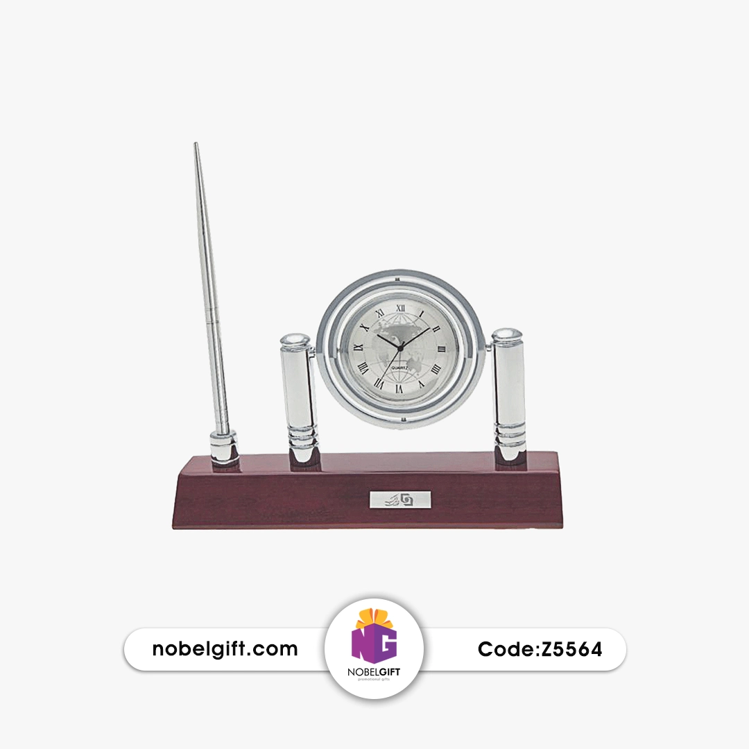 ست رومیزی ساعت و جا قلم کد Z5564 از برند Nobel Gift یک گزینه منحصربهفرد برای تقدیر از پرسنل و مشتریانی است که سبک زندگی پرمشغلهای دارند و به زمان اهمیت میدهند.