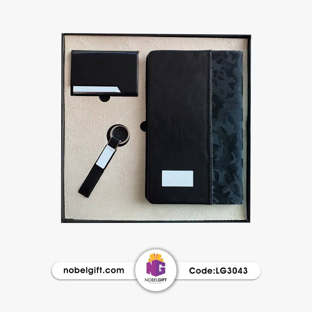 ست سررسید 1404، جاکارتی و جاکلیدی تبلیغاتی با طراحی منحصربهفرد و بسته بندی ویژه در کنار کیفیت و زیبایی، هدیهای شیک و مناسب جهت تقدیم به افراد است. این ست تبلیغاتی 3 تکه شامل محصولات زیر می باشد: