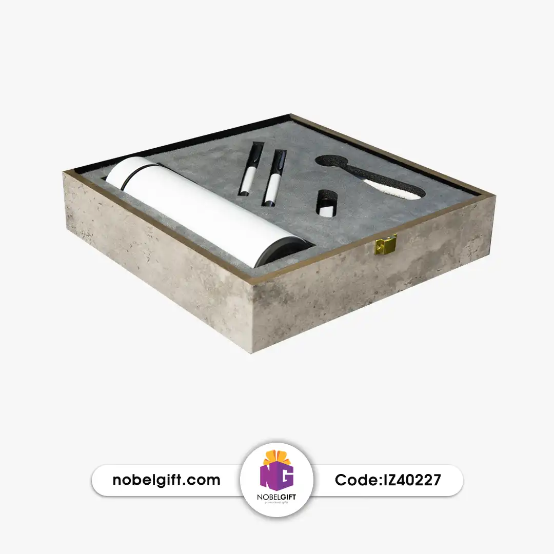 ست فلاسک و فلش مدیریتی تبلیغاتی با طراحی منحصربه‌فرد و بسته بندی ویژه در کنار کیفیت و زیبایی، هدیه‌ای شیک و مناسب جهت تقدیم به افراد است. این ست تبلیغاتی 5 تکه شامل محصولات زیر می باشد: