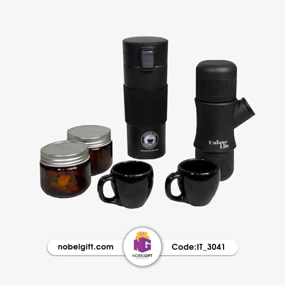 ست قهوه مدیریتی تبلیغاتی IT_3041 با طراحی منحصربهفرد و بسته بندی ویژه در کنار کیفیت و زیبایی، هدیهای شیک و مناسب جهت تقدیم به افراد است. این ست تبلیغاتی 4 تکه شامل محصولات زیر می باشد:
