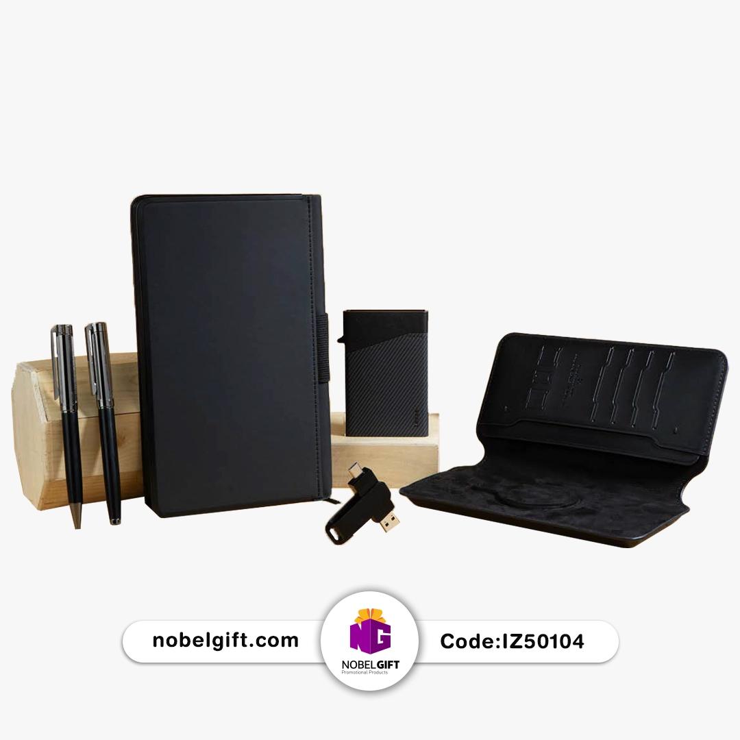 1. این مجموعه (کد IZ50104) شامل اقلامی نظیر سررسید، خودکار، فلش مموری، جاکارتی و کیف پول بوده که با چاپ لوگو، برند شما را در حافظه مخاطبانتان ثبت می‌کند.