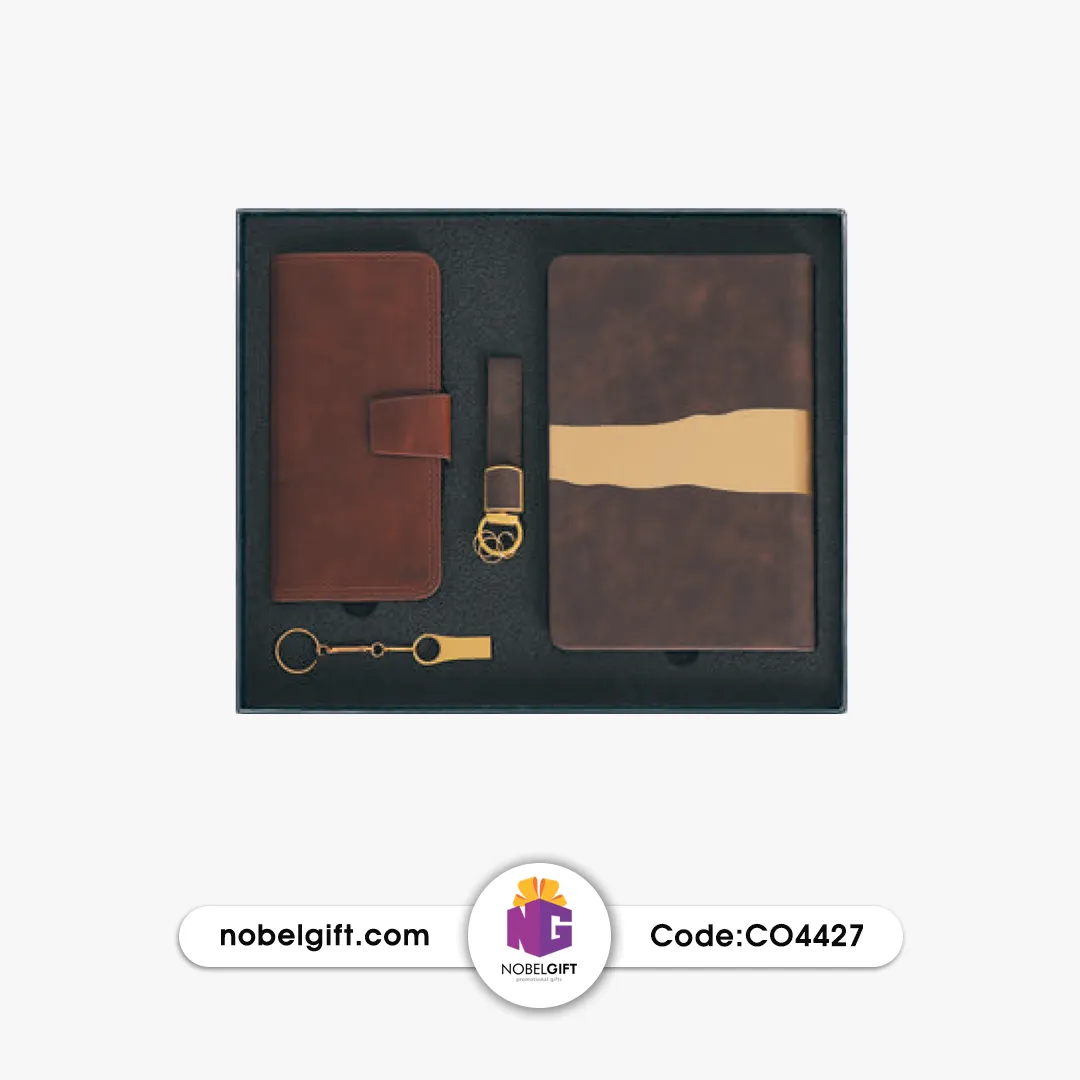 ست مدیریتی قهوه ای طلایی 4 تکه تبلیغاتی