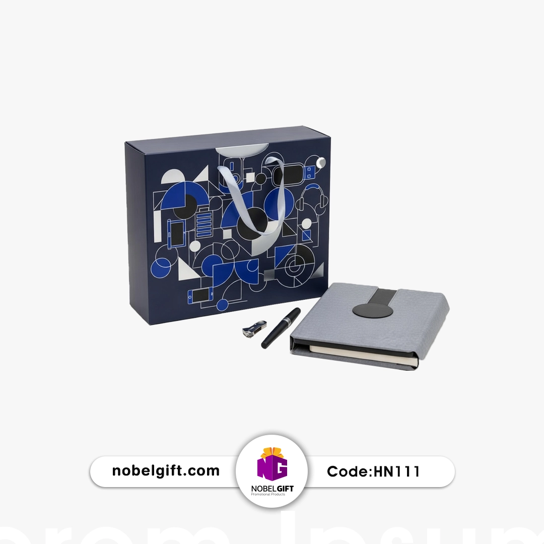 - ست هدیه تبلیغاتی کد HN111 یک پکیج مدرن، کاربردی و حرفهای است که نیازهای روزمره اداری و دیجیتال را به شکلی شیک پوشش میدهد.