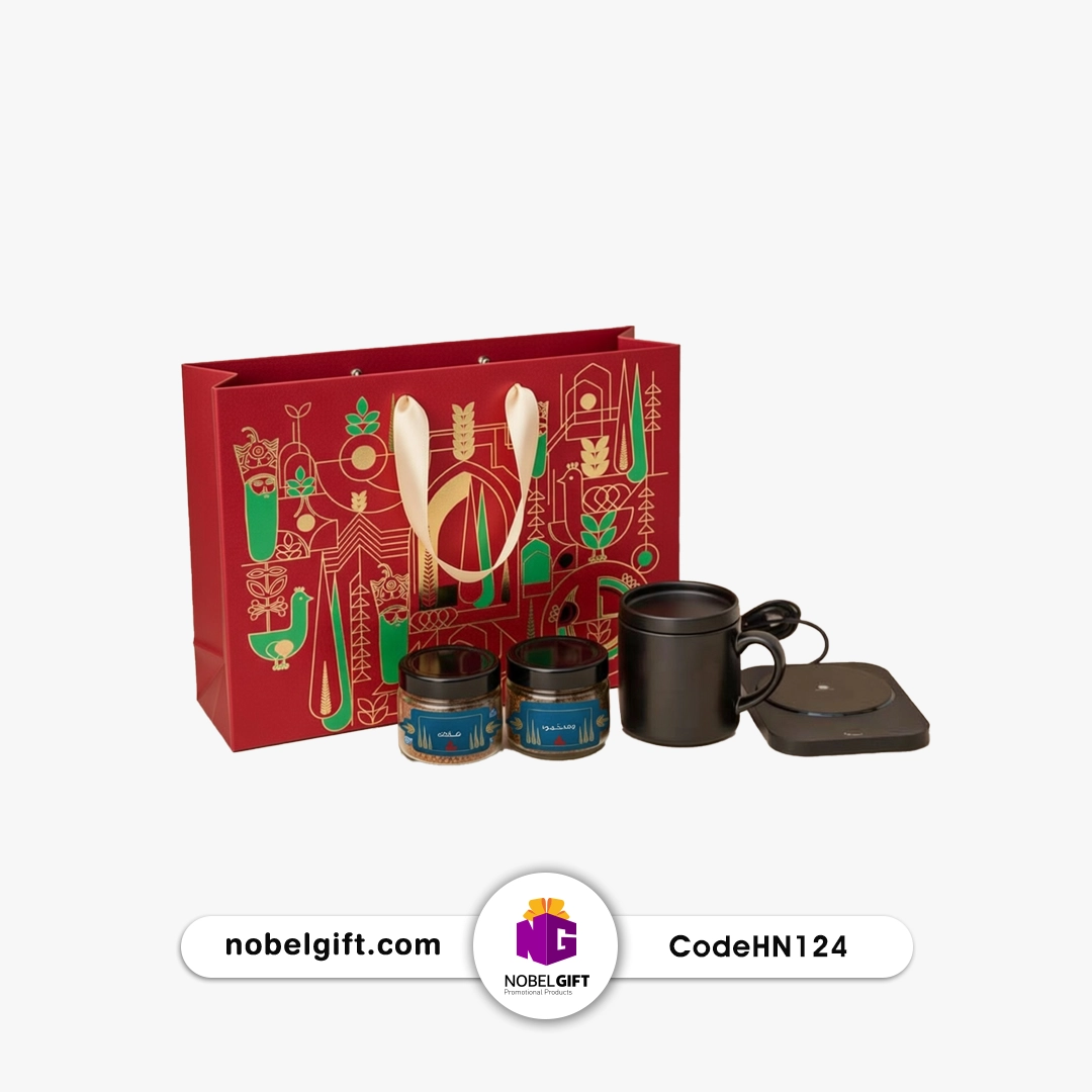 ست هدیه تبلیغاتی گرمکن ماگ با قهوه و کیف سنتی کد HN124