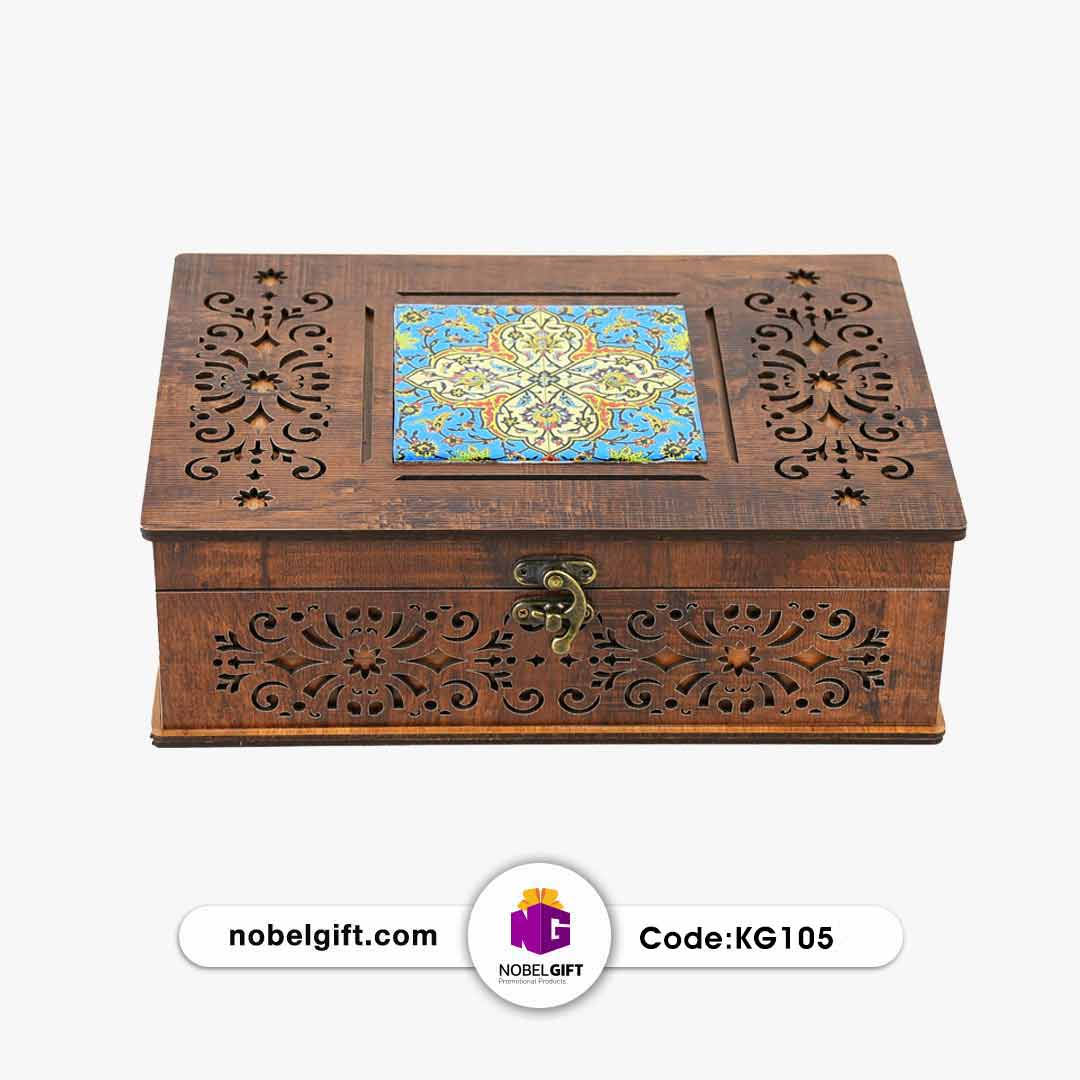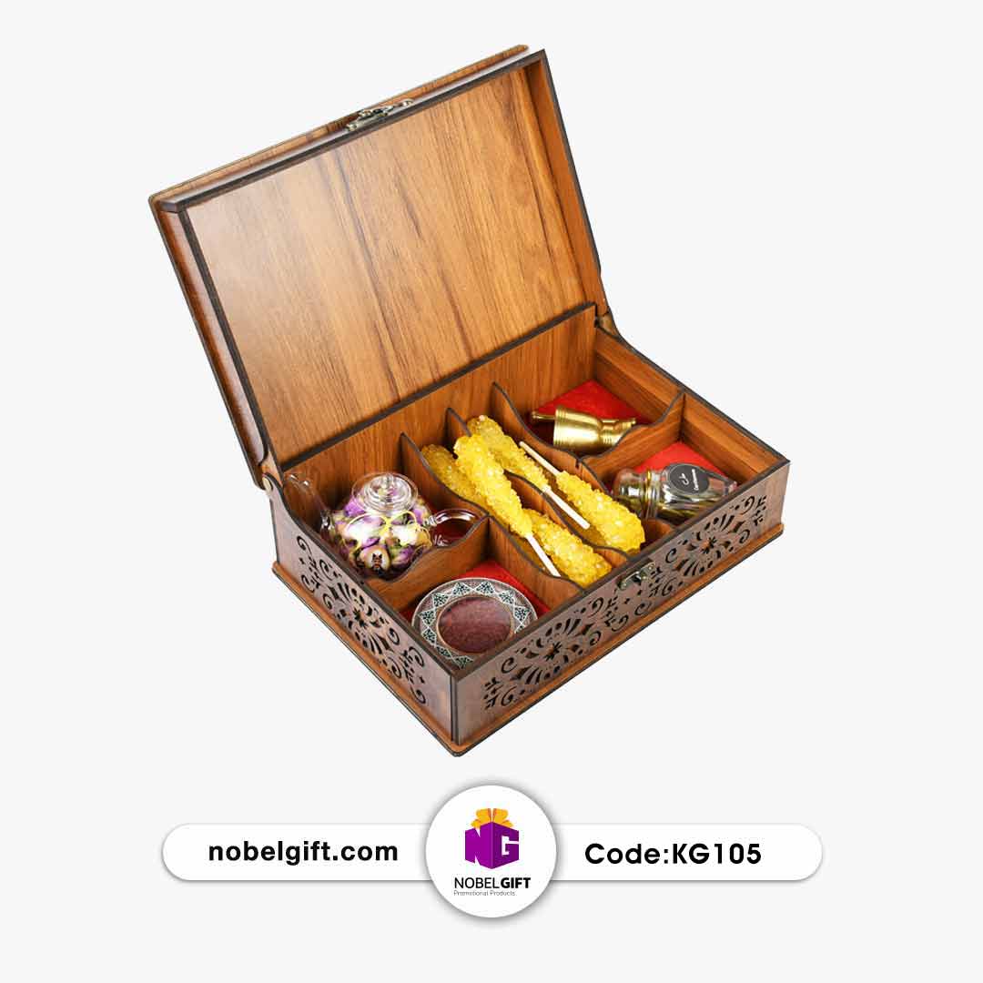 ست هدیه زعفران و نبات کد KG105 ، یک پکیج پذیرایی کامل و لوکس است که با تمرکز بر طعم‌های اصیل و شیرین ایرانی، جلوه‌ای باشکوه از میزبانی را در یک جعبه چوبی حکاکی شده ارائه می‌دهد. این مجموعه، با ترکیب زعفران اعلا و نبات زعفرانی به همراه ابزار دم‌آوری زیبا، پیامی از سلامتی، انرژی و احترام ویژه را به گیرنده منتقل می‌کند.