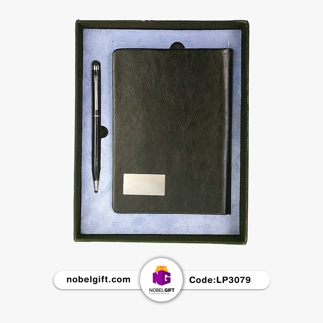 - این ست اداری کلاسیک و رسمی شامل یک دفترچه یادداشت با روکش چرمی مشکی و یک خودکار فلزی شیک است که ترکیبی از سادگی و وقار را ارائه میدهد.