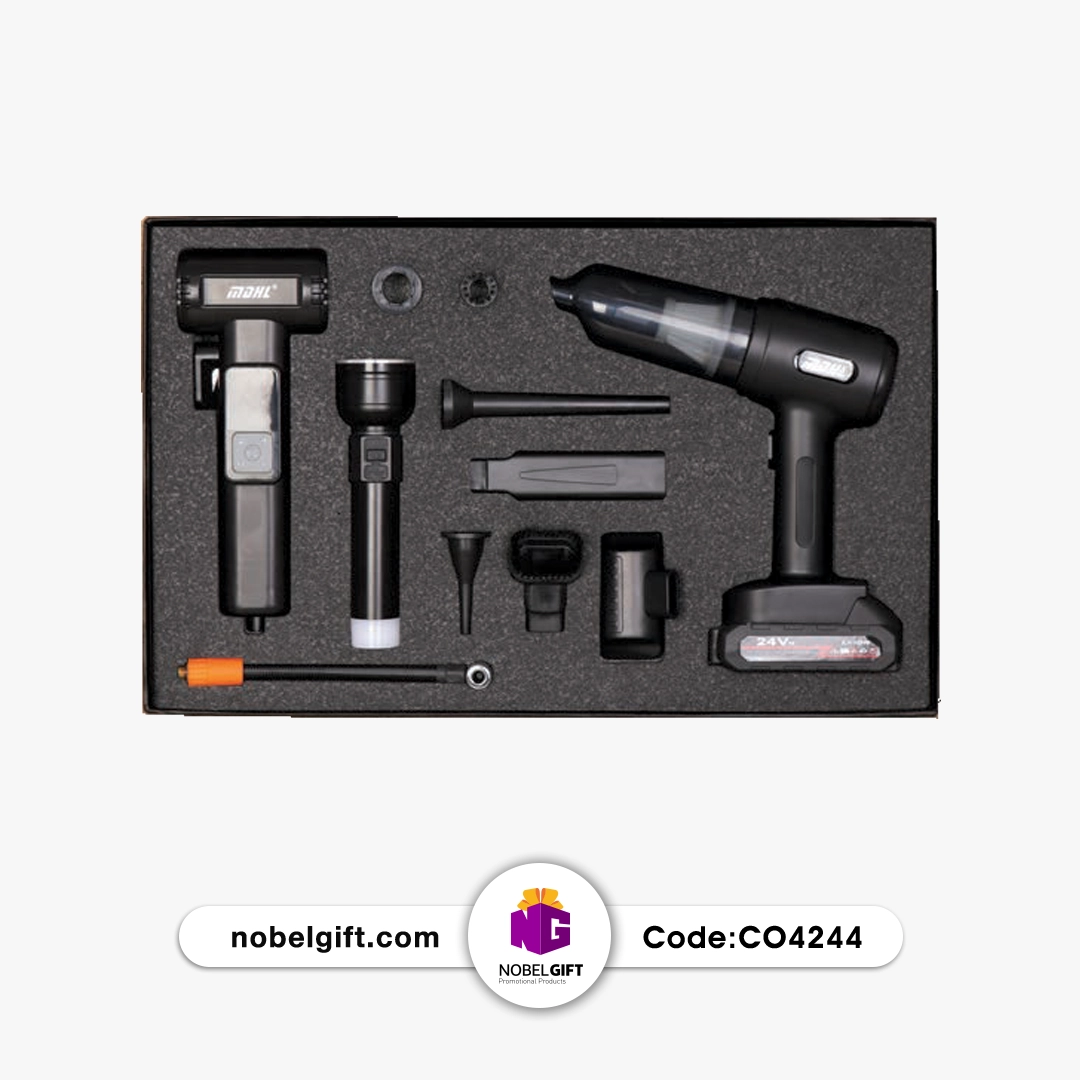 - این ست (CO4244) یکی از هوشمندانهترین هدایای تبلیغاتی برای شرکتهای فعال در حوزه صنعت، بیمه، و خودرو است. برخلاف هدایای تزئینی، این مجموعه در لحظات نیاز (مانند کم شدن باد لاستیک در جاده یا نیاز به نور در تاریکی) به کمک کاربر میآید و به همین دلیل ارزش معنوی و کاربردی بسیار بالایی دارد.