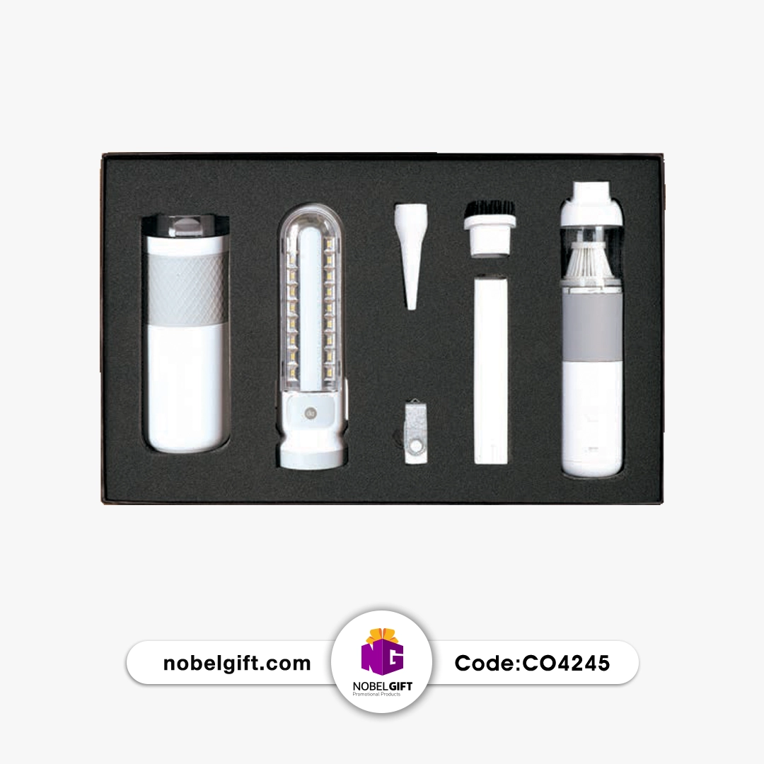 ست هدیه نوری و نظافتی خودرو با کد CO4245 از برند Nobel Gift یک گزینه منحصربهفرد برای تقدیر از پرسنل و مشتریانی است که سبک زندگی پرمشغلهای دارند و به زمان اهمیت میدهند.