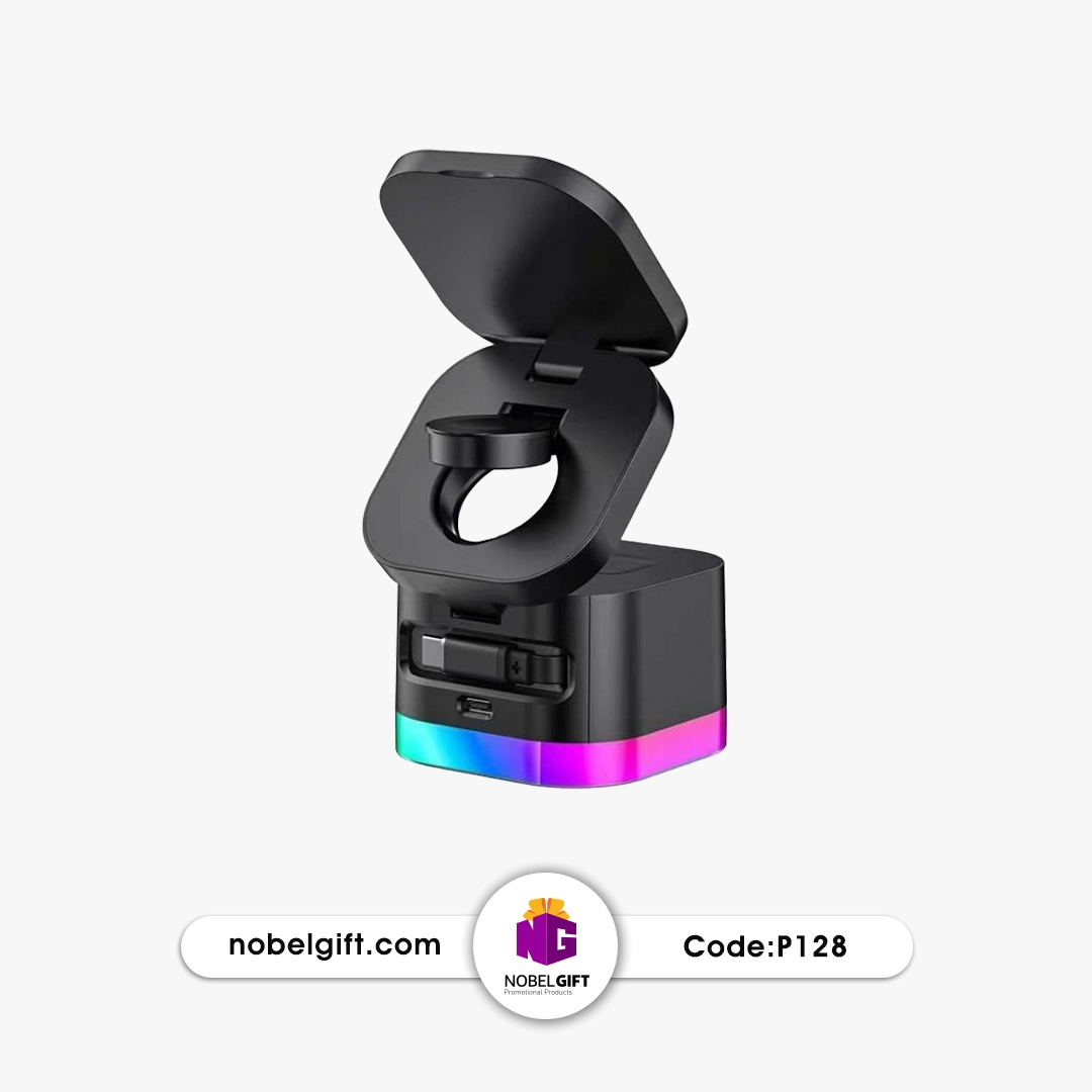 - این محصول با کد P128 ، یک شارژر وایرلس ایستاده/رومیزی با نور RGB (RGB Wireless Charging Stand / Dock) است.